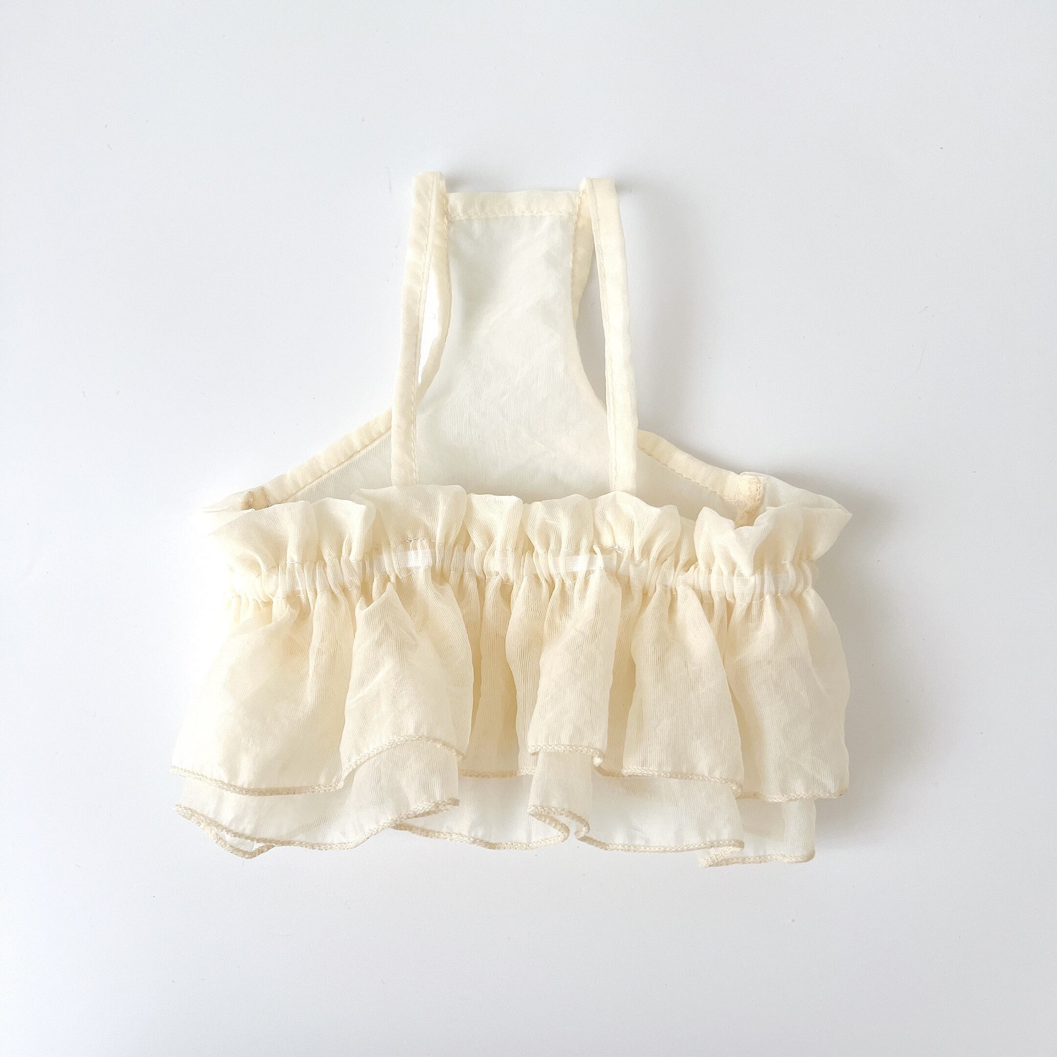 軽いシアーなオーガンジー素材のラッフルビスチェです。ふわっとしたシルエットがとっても可愛いです。ほんのり皺感がありクシュっとしています。