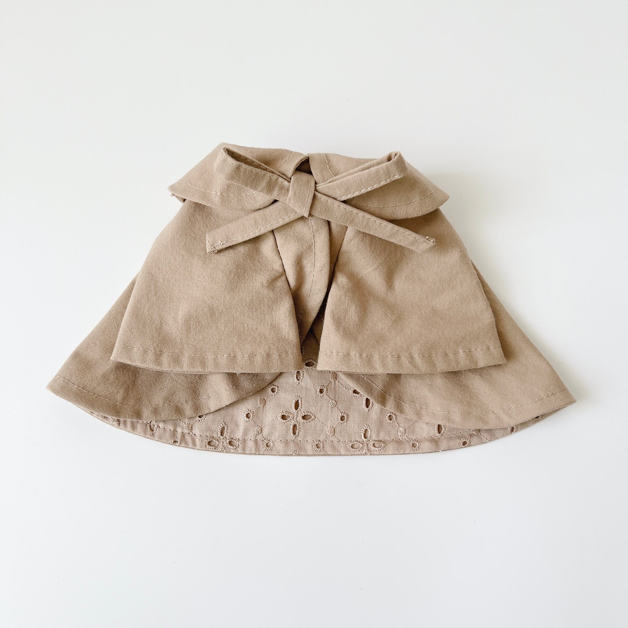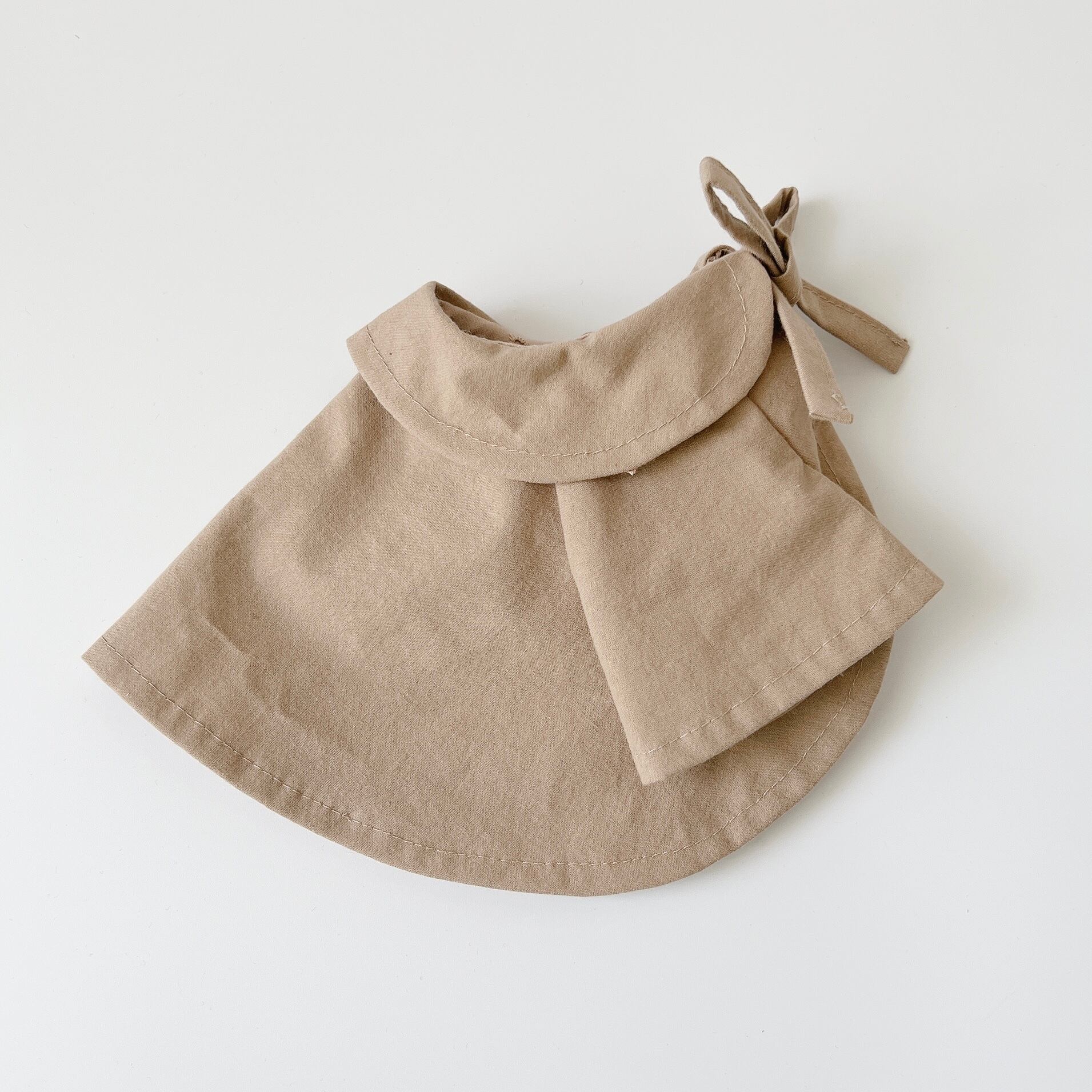 丸みのあるシルエットが可愛いケープ。表はトレンチコートのようなハリのあるコットン、裏はアイレットレース生地です。