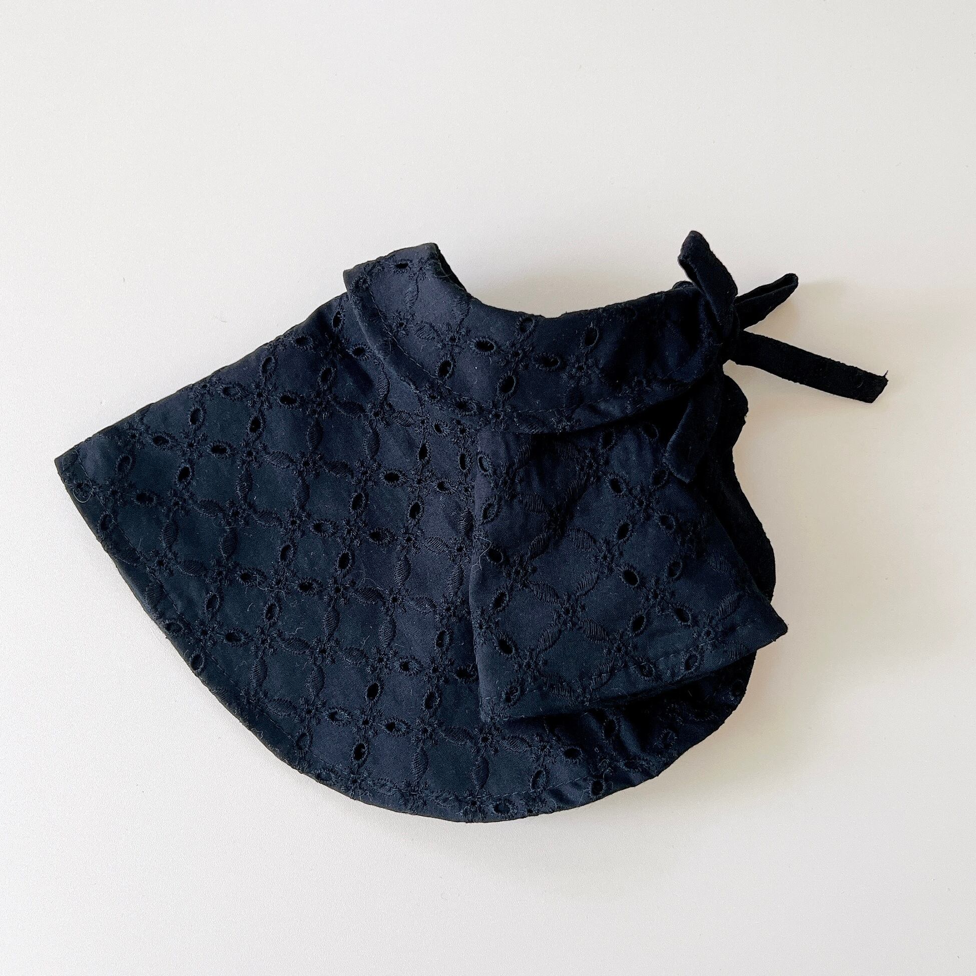 丸みのあるシルエットが可愛いケープ。表はアイレットレース生地、裏はハーフリネンです。