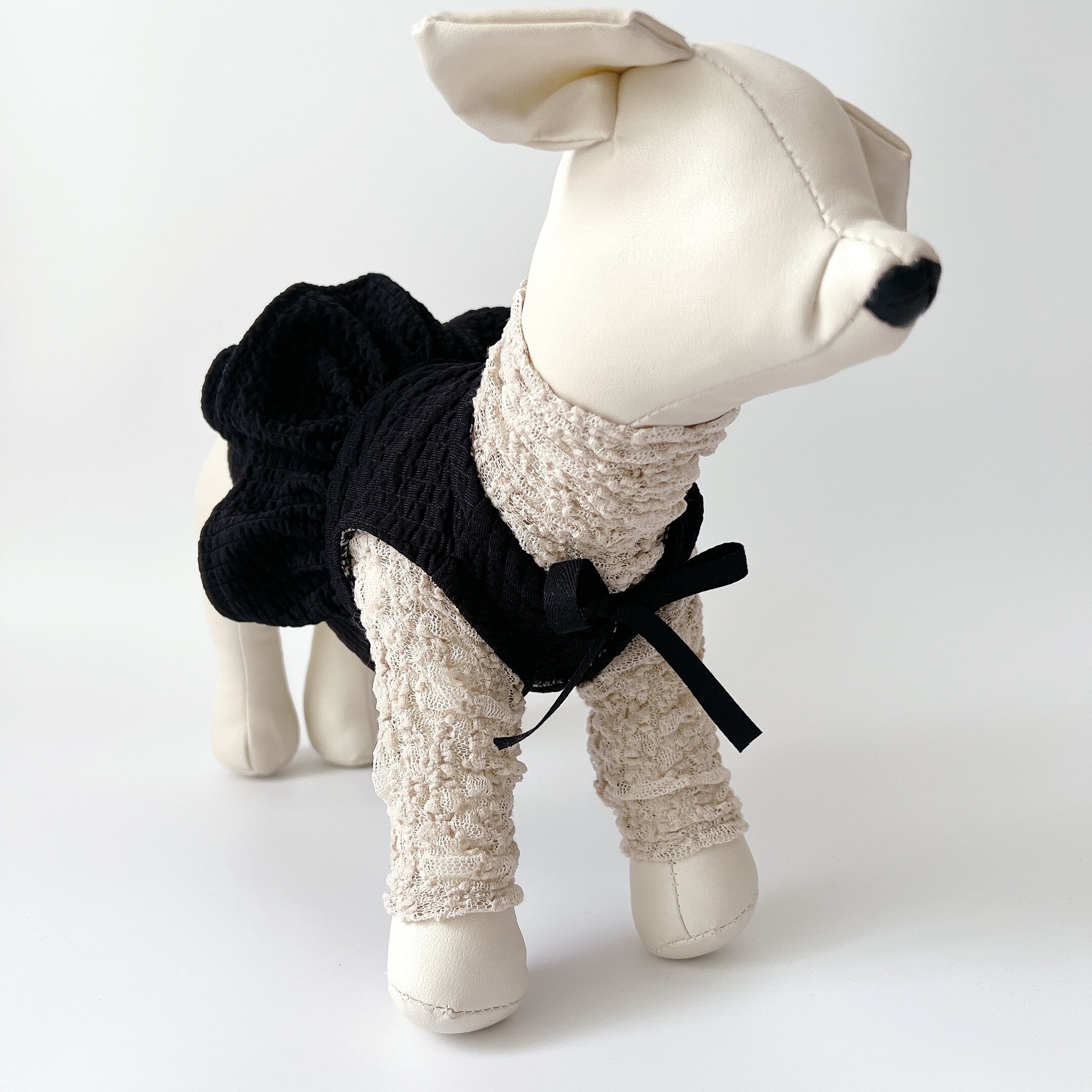 (トルソーのサイズ:首周り20cm 着丈20cm 胴回り30cm XXS着用。)