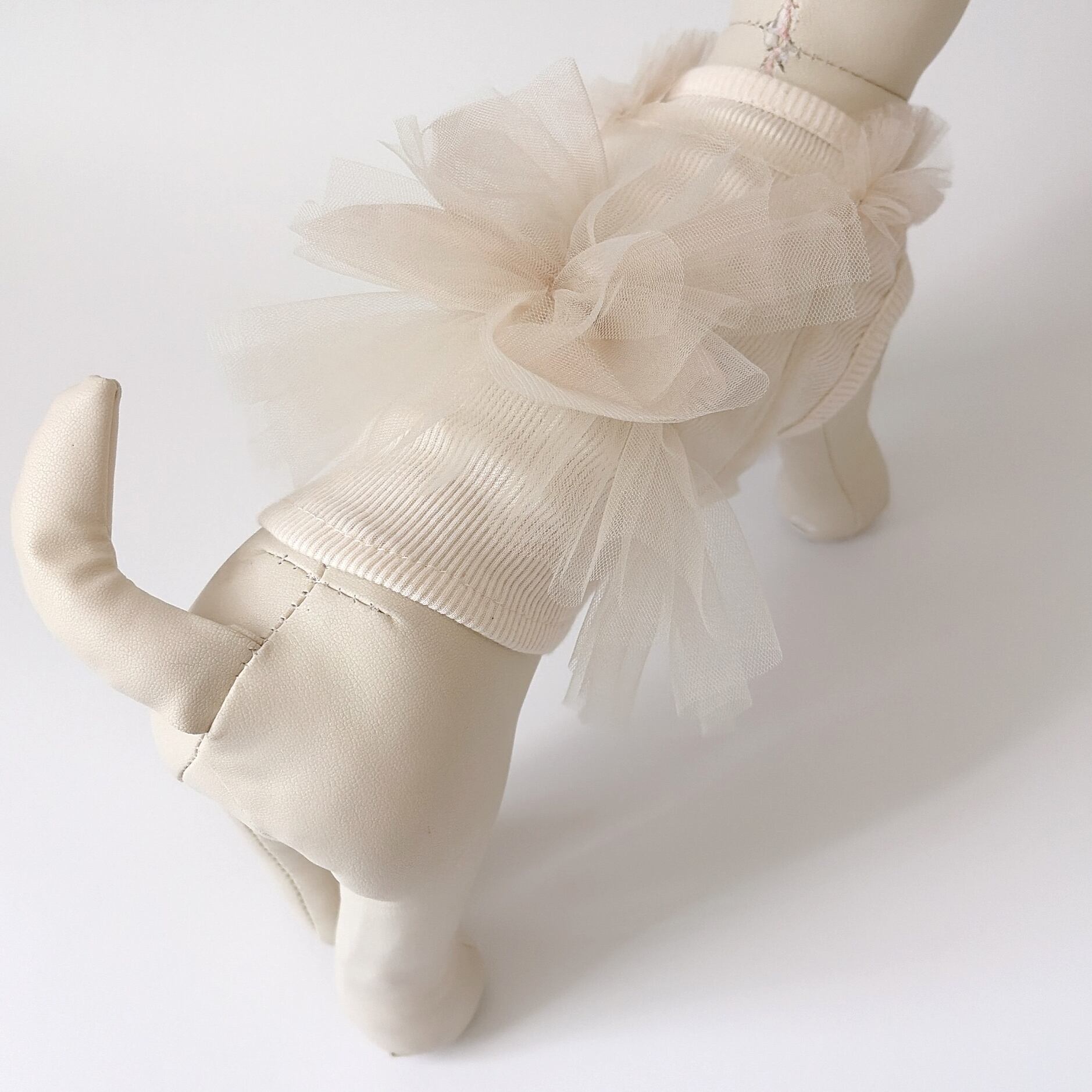 (トルソーのサイズ:首周り20cm 着丈20cm 胴回り30cm XXS着用。)