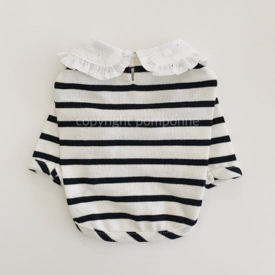 小花刺繍のビッグカラーがとっても女の子らしいカットソー。首後ろ部分がボタンで開閉できます。首周りは伸縮性が無いのでサイズにゆとりをもたせてください。