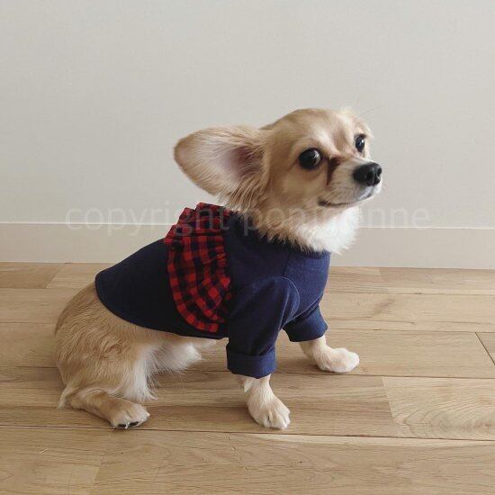 XXS:首周り20cm 着丈20cm 胴回り30cm 袖丈(腹側)8.5cm