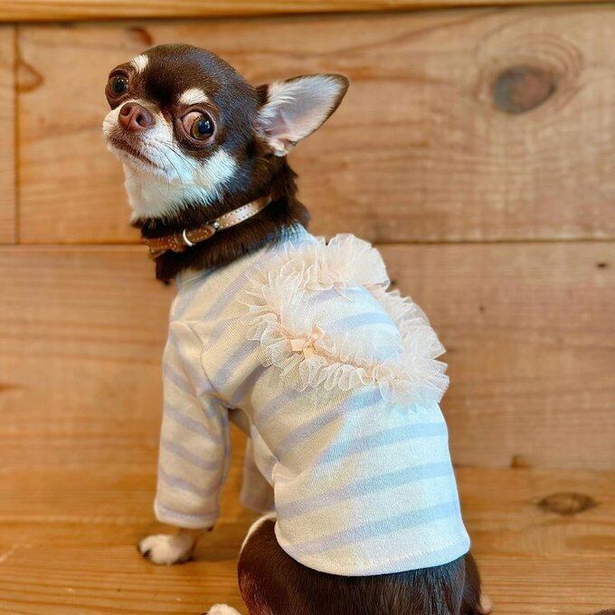 犬服・バックチュールハートカットソー_ボーダー